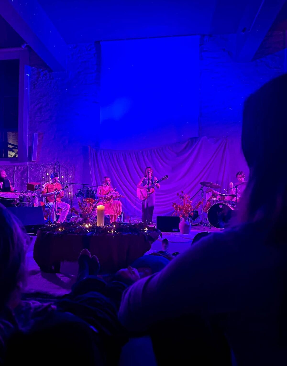 The church was packed, and we were all in a circle, with an ocean of cushions and people sitting on the floor, some on chairs, some standing, all looking to a stage illuminated with hues of purple and blue. Susie’s concert had this dreamy texture that made one feel at home.